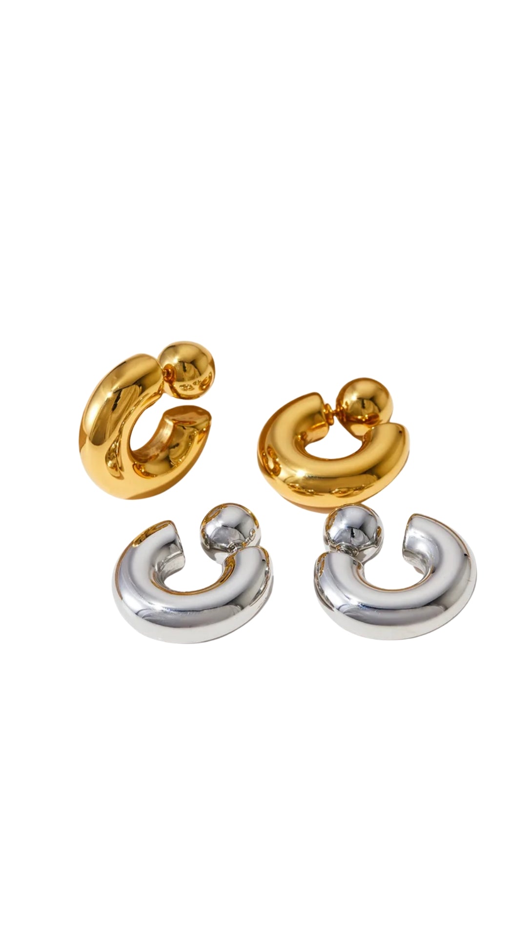 the duo hoops are a modern twist on a classic favorite. Their double-layered design adds subtle dimension and shine, and their versatile clasp allows you to wear them two ways — as a sleek hoop or a minimalist stud