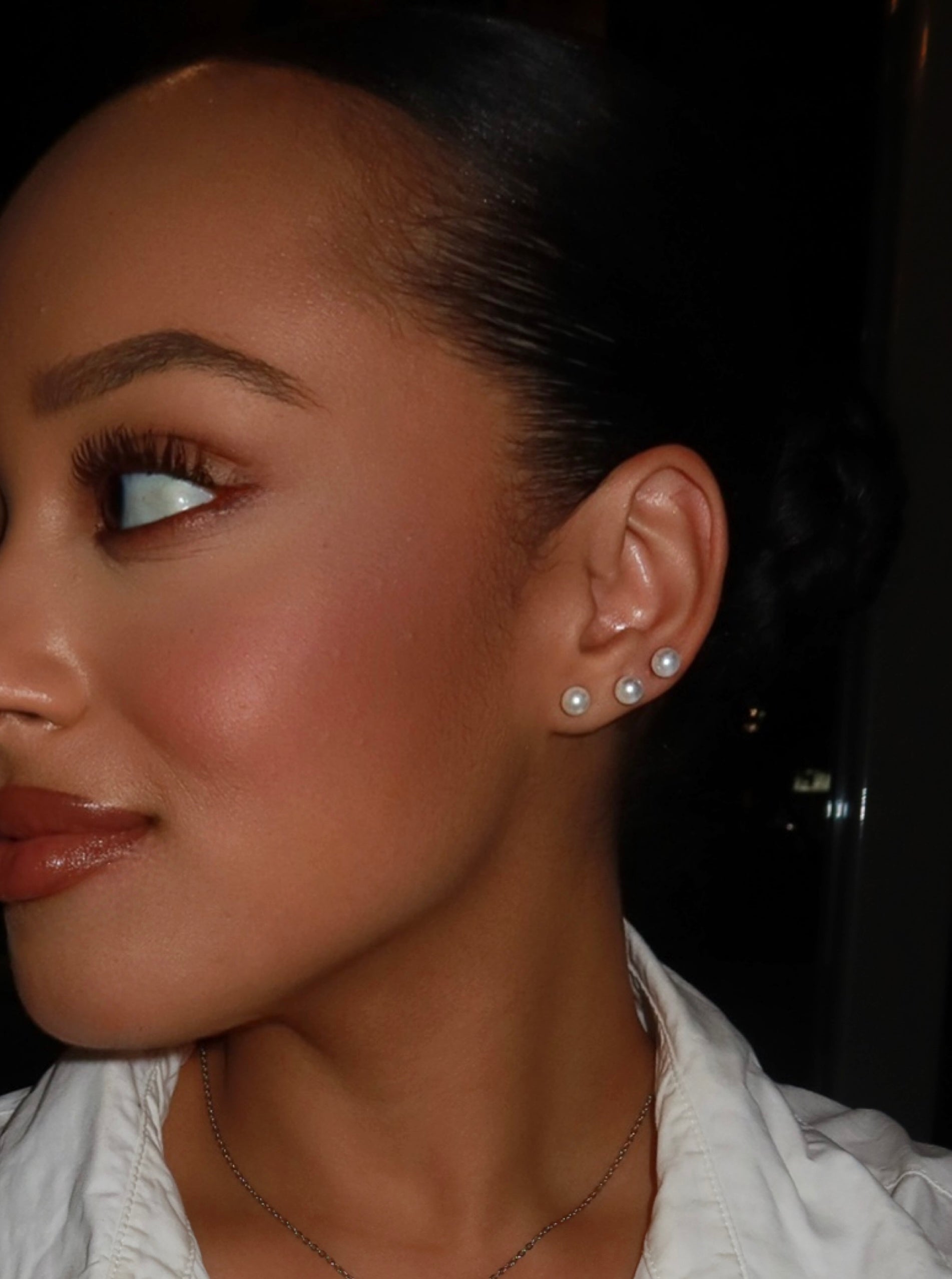 the grace pearl studs redefine timeless simplicity. Featuring smooth luminous pearls set on polished gold, they bring an effortless touch of elegance to every look