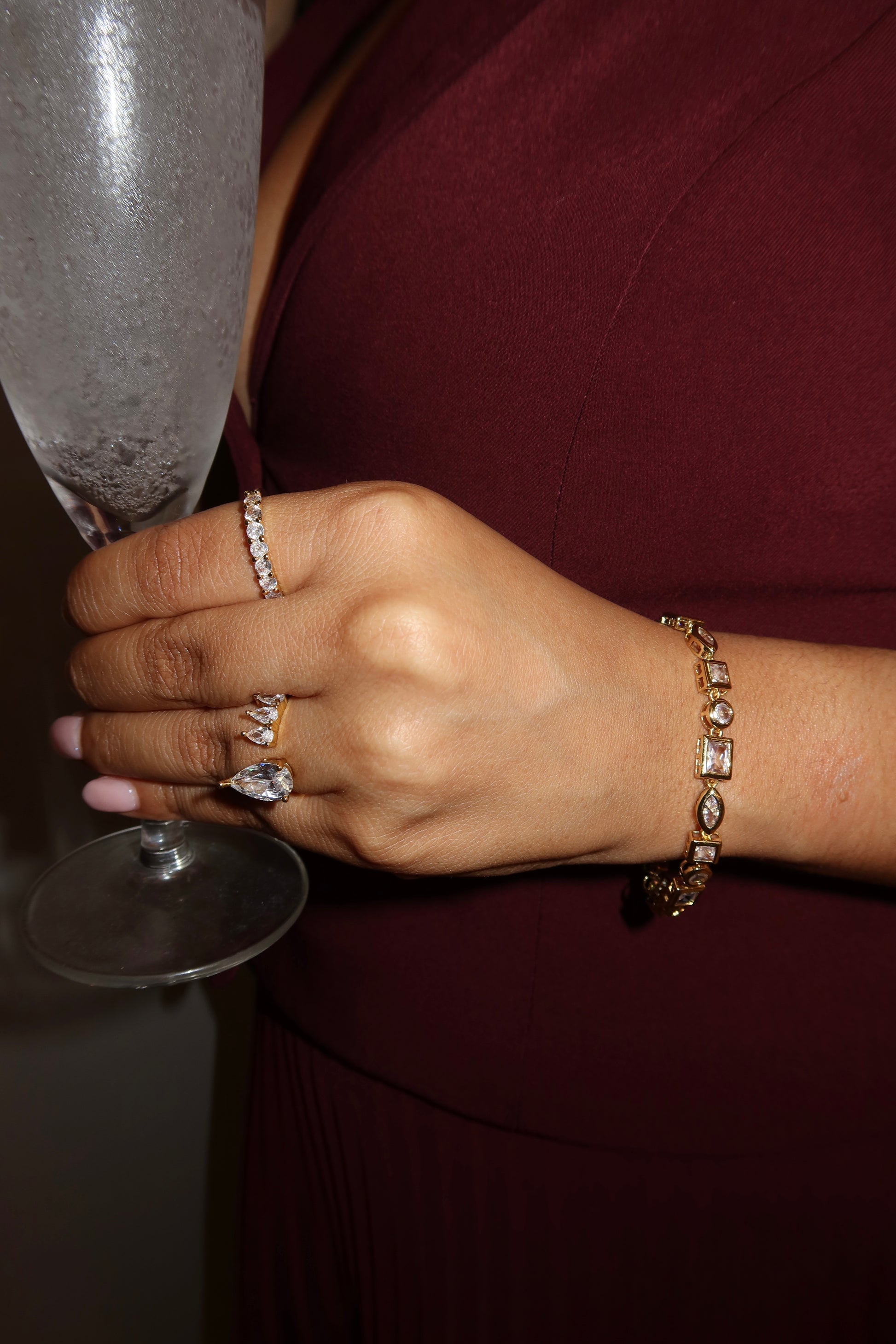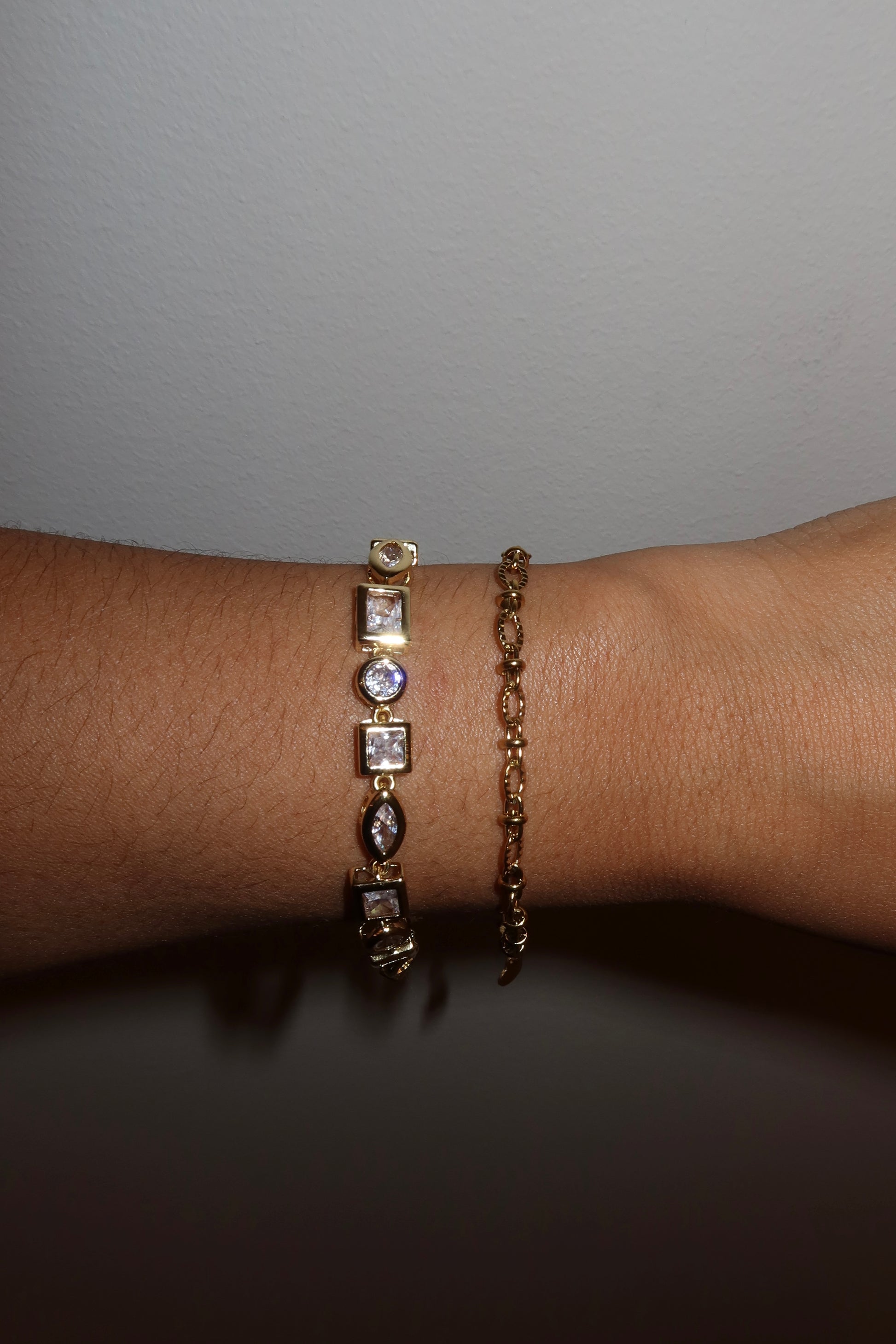 a modern twist on a classic. this bracelet features a stunning mix of square, round, and marquise cut stones arranged in a soft mosaic pattern. elegant, eye catching, and perfect for everyday shine or a special night out.